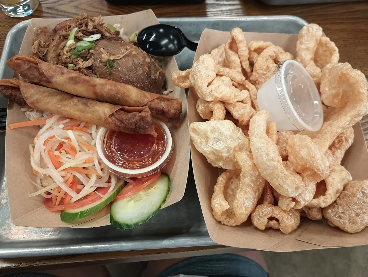 Awesome little food court in E-town! There are 3 restaurants and a large bar consisting of wood fire pizza, Mexican, and Japanese. You and your friends can each get different plates and eat together, making everyone happy even when you all want different foods! There also happens to be a small bowling alley. We went to Wasabi Bistro and got the crab rangoons and split a hibachi steak meal. Both were very delicious and would recommend!