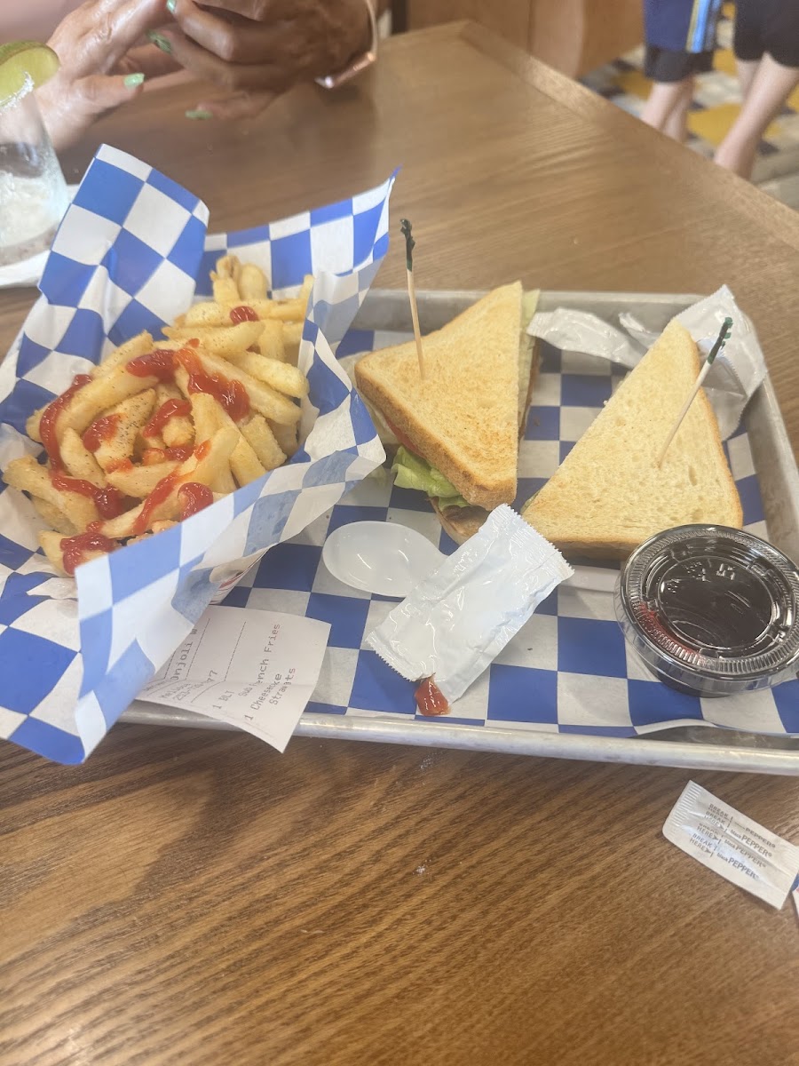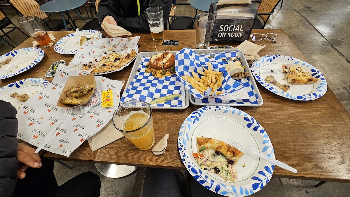 This review is for STREAT Kitchen in social on main. Some items on their menu are coming soon. Seems like they just recently opened. They replaced the Taco place. We ordered the Parmesan garlic fires to share, coney Island dog, and built our own smash burger. Everything was very good the chili actually had a little spice to it on the dog. The fires could have been a little crisper but the plethora of different ketchups and aioli you can get for dipping was awesome.